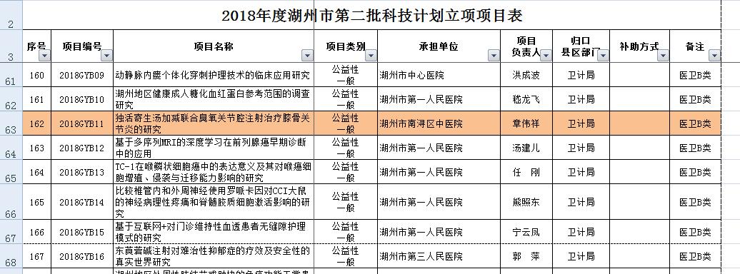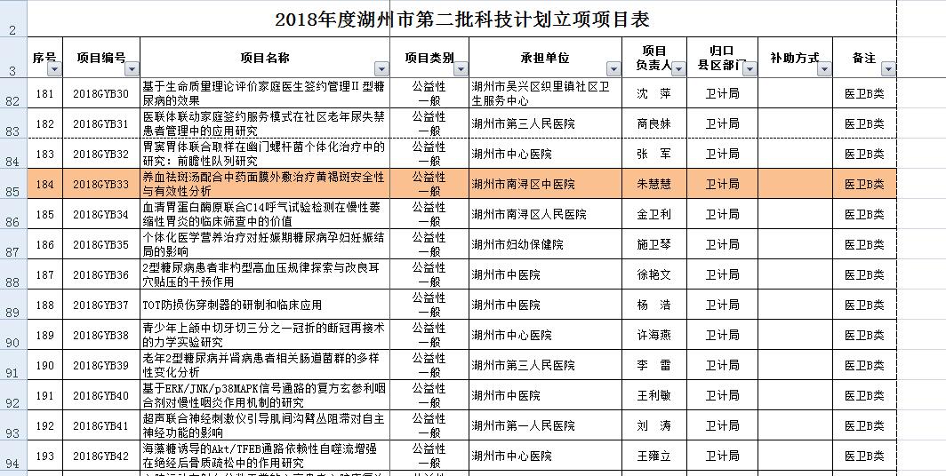 时间:18-12-11来源/作者:院办近日从市科技局获悉,湖州市第二批科技计划项目公布。南浔区中医院骨伤科主任章伟祥,中药房主管中药师朱慧慧经过前期的精心准备,申报的两项中医药科研项目最终成功立项。课题名称分别是《独活寄生汤加减联合臭氧关节腔注射治疗膝骨关节炎的研究》和《养血祛斑汤配合中药面膜外敷治疗黄褐斑安全性与有效性分析》。此次中医药科研项目成功立项,实现了南浔区中医药类科研立项的零突破。