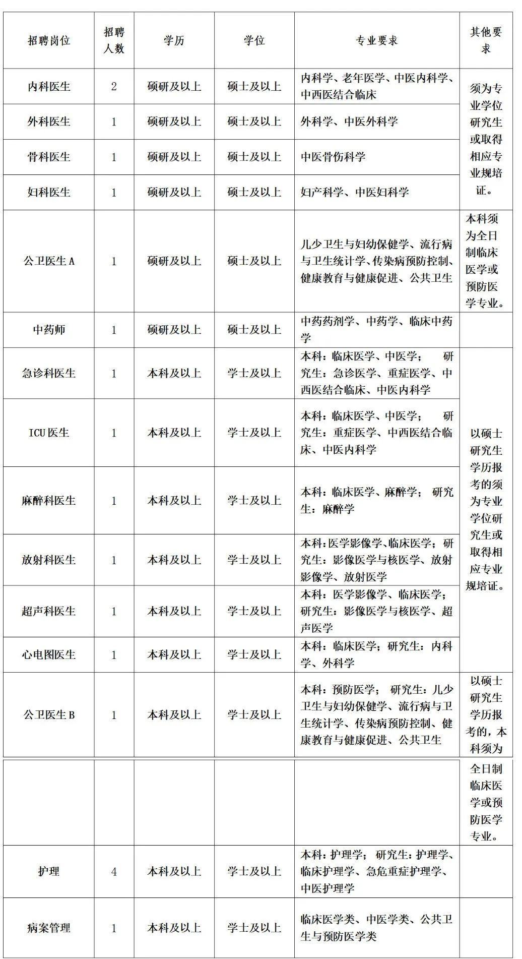 (二)招聘条件 1.具有中华人民共和国国籍,遵守中华人民共和国法律、法规; 2.自愿履行医疗卫生岗位工作人员岗位职责,遵守纪律,品行端正;3.具备招考岗位所需的专业、学历、学位要求; 4.身体健康。年龄35周岁(1987年2月20日以后出生)以下;具有博士研究生学历(学位)人员,年龄可放宽到45周岁(1977年2月20日以后出生)以下;5.除岗位有特殊要求的以外,生源地和户籍不限; 6.招聘岗位要求的专业技术职务任职资格或职业资格等证书(以发文或发证时间为准)须在报名开始日期前取得;7.符合招聘岗位需要的其他条件。