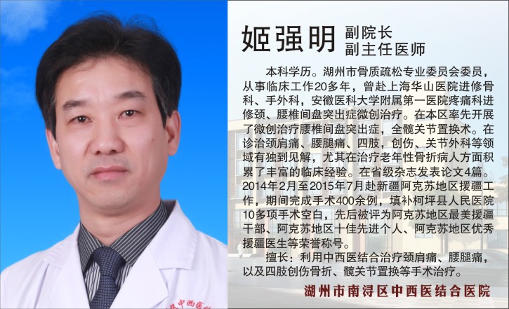 从“浙江日报”获悉,南浔区中西医结合医院副院长、骨科副主任医师姬强明作为南浔区唯一个人入选“浙江好人榜”,喜获“敬业奉献奖”, 全省共有11名个人入选敬业奉献奖。