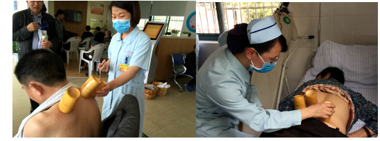 这边,徐斌斌和任爱英两位护士长为前来咨询肩颈疼痛和腰背酸痛的社区居民进行拔火罐疗法。拔火罐可起到疏通经络、祛湿散寒的作用,能有效缓解疼痛。那边,黄秀芳护士长正在为失眠的居民进行耳穴压豆,通过耳穴压豆来调节脏腑气血功能,缓解失眠症状。活动现场,还发放了大量中医保健宣教资料。